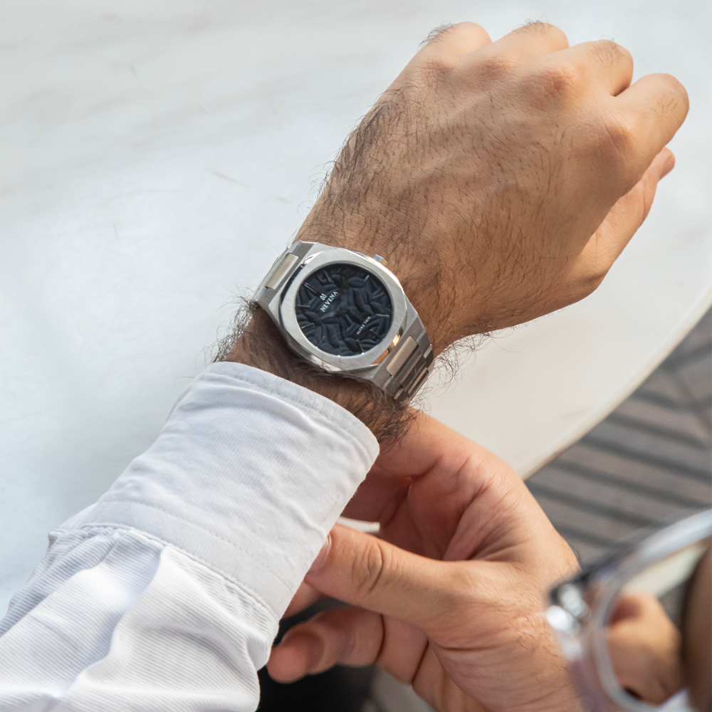 تقدم ساعة رجالية العز باللون الفضي تصميمًا أنيقًا وفريدًا يتناسب مع الذوق الرفيع ويعكس الثقة والشخصية القوية.